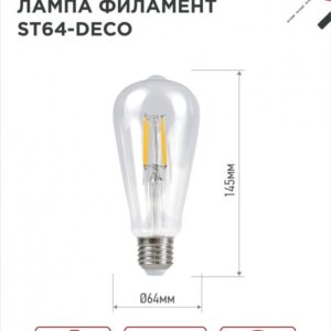 Светодиодная лампа филамент в ретро-корпусе LED-ST64-DECO не только обеспечит широкий угол освещения и экономичное энергопотребление, но и станет ярким элементом
