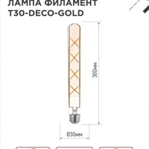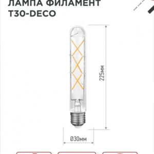 Светодиодная лампа филамент в форме цилиндра LED-T30-DECO не только обеспечит широкий угол освещения и экономичное энергопотребление, но и станет заметным