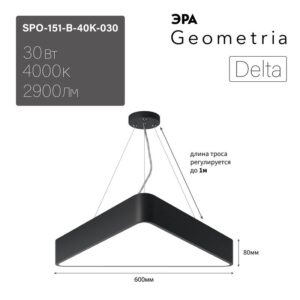 Светильник LED ЭРА Geometria SPO-153-B-40K-030 Delta 30Вт 4000К 2100Лм IP40 600*80 черный подвесной драйвер внутри