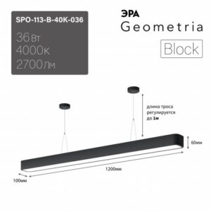 Светильник LED ЭРА Geometria SPO-115-B-40K-036 Block 36Вт 4000K 3100Лм IP40 1200*100*50 черный подвесной драйвер внутри