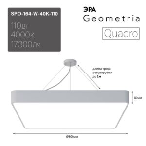 Светильник LED ЭРА Geometria SPO-164-W-40K-110 Quadro 110Вт 4000К 17300Лм IP40 800*800*80 белый подвесной