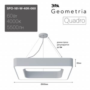 Светильник LED ЭРА Geometria SPO-161-W-40K-060 Quadro 60Вт 4000К 5500Лм IP40 600*600*80 белый подвесной драйвер внутри