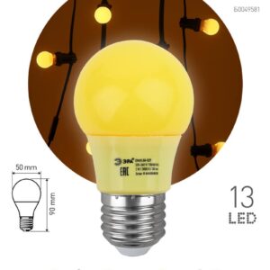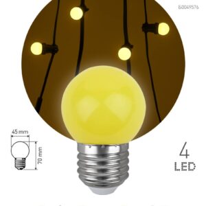 Декоративная светодиодная лампа ЭРА "Белт-лайт" с цоколем Е27 и колбой шар (Р45) жёлтого цвета. Мощность — 1 Вт. Идеально подходит