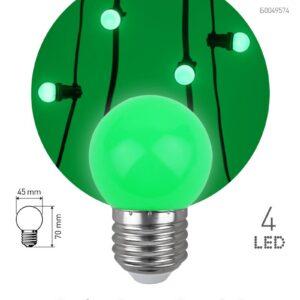 Декоративная светодиодная лампа ЭРА "Белт-лайт" с цоколем Е27 и колбой шар (Р45) зелёного цвета. Мощность — 1 Вт. Идеально подходит