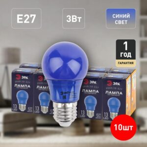 Декоративная светодиодная лампа ЭРА "Белт-лайт" с цоколем Е27 и колбой груша (А50) синего цвета. Мощность — 3 Вт. Идеально подходит