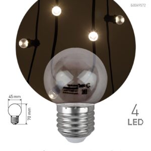 Декоративная светодиодная лампа ЭРА "Белт-лайт" с цоколем Е27 и колбой шар (Р45) белого цвета. Мощность — 1 Вт. Идеально подходит