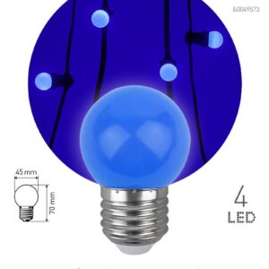 Декоративная светодиодная лампа ЭРА "Белт-лайт" с цоколем Е27 и колбой шар (Р45) синего цвета. Мощность — 1 Вт. Идеально подходит