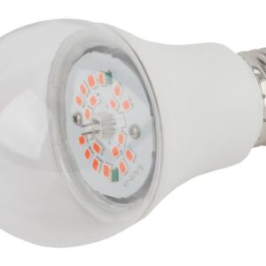 Новая полноспектральная фитолампа с популярным цоколем Е27. Красные и белый светодиоды равномерно расположены на широкой круглой плате, что позволяет охватывать