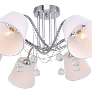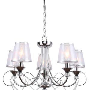 Подвесная классическая люстра Rivoli Artemisia с 5 тканевыми плафонами. Цвет арматуры люстры – хром. Окрашивание корпуса люстры осуществлено гальваническим способом,