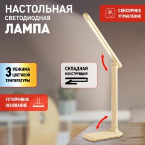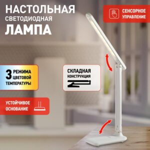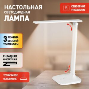Настольный светильник ЭРА NLED-513-6W-W со светодиодами (LED) в качестве источников света, с сенсорным управлением, возможностью выбора цветовой температуры и плавным