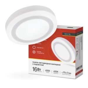 Панель светодиодная накладная круглая NRLP-BL 16Вт 230В 4000К 960Лм 195мм с подсветкой белая IP20 IN HOME