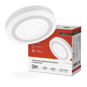 Панель светодиодная накладная круглая NRLP-BL 9Вт 230В 4000К 540Лм 145мм с подсветкой белая IP20 IN HOME