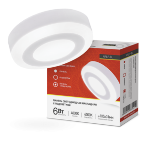 Панель светодиодная накладная круглая NRLP-BL 6Вт 230В 4000К 350Лм 105мм с подсветкой белая IP20 IN HOME