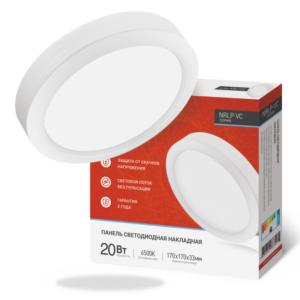 Панель светодиодная накладная круглая NRLP-VC 20Вт 230В 6500К 1600Лм 170мм белая IP40 IN HOME