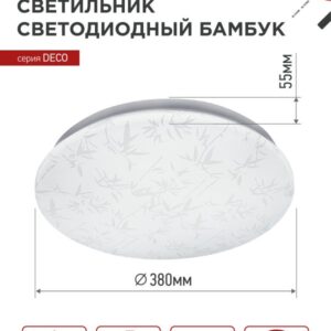 Светодиодный светильник БАМБУК серии DECO ТМ IN HOME в светлом матовом корпусе украшен принтом в виде стилизованных листьев бамбука. Согласно