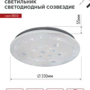 Светодиодный светильник серии DECO ТМ IN HOME с динамичным рисунком в виде хоровода созвездий станет удачным дополнением жилого интерьера. Линейка
