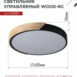 Светильник светодиодный SCANDY WOOD-75RCB 75Вт 230В 3000-6500K 6000Лм 400×50мм с пультом ДУ черный IN HOME