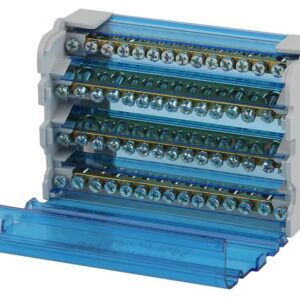 Шины выполнены из высококачественной латуни, изолирующая задняя панель и прозрачная защитная крышка выполнены из самозатухающего пластика. Применяются при комплектации щитового