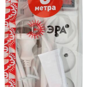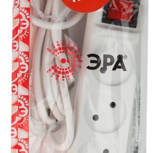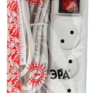 Удлинитель электрический Эра U-5-3m без заземления, ПВС, 2×1мм2, 5 розеток, 3м. Рассчитан на максимальную мощность 10А/2200 Вт. Удлинитель Эра станет