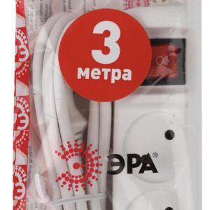Удлинитель электрический Эра U-3-3m без заземления, ПВС, 2×1мм2, 3 розетки, 3м. Рассчитан на максимальную мощность 10А/2200 Вт. Удлинитель Эра станет