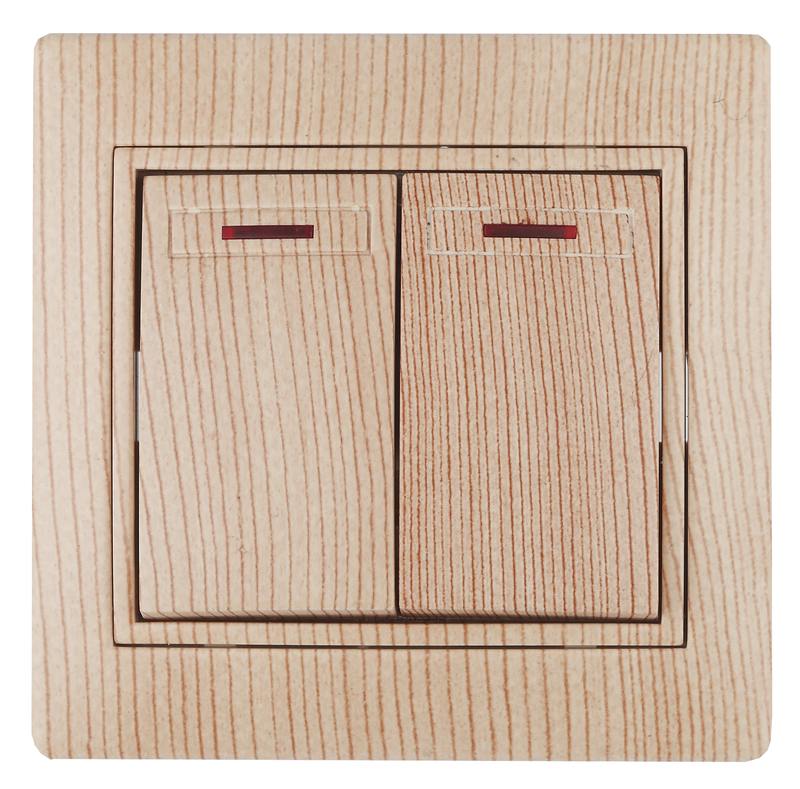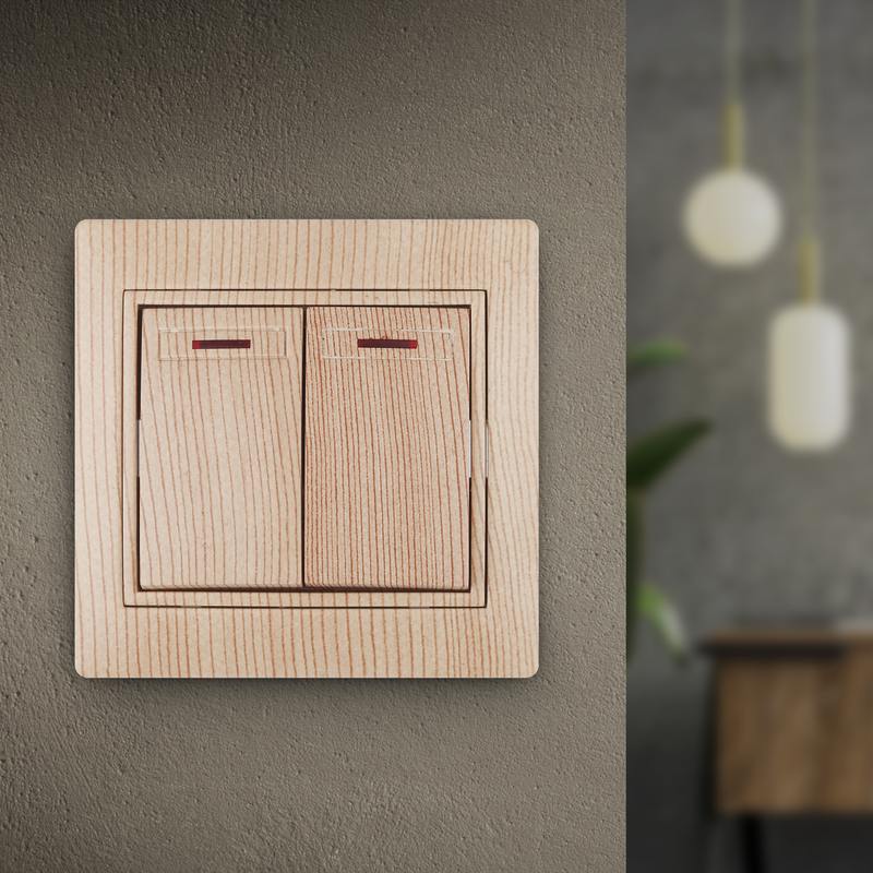 Характеристики 1-105-11 Intro Выключатель двойной с подсветкой, 10А-250В, IP20, СУ, Plano, сосна: