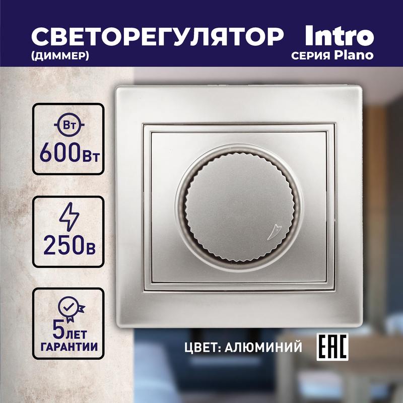 Характеристики 1-401-03 Intro Светорегулятор поворотный, 600Вт 230В, IP20, СУ, Plano, алюминий: