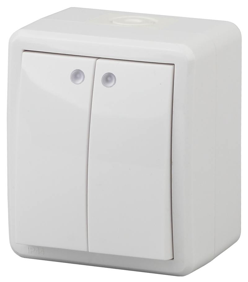 Характеристики 11-1405-01 ЭРА Выключатель двойной с подсветкой IP54, 10АХ-250В, ОУ, Эра Эксперт, белый: