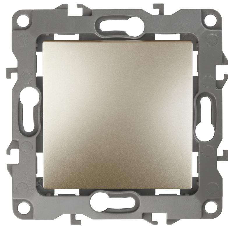 Выключатель 1-клавишный проходной серии Эра 12 скрытой установки механизм цвет шампань 12-1103-04. Номинальные характеристики 10А 250В . Сделан из поликарбоната, оснащёно автоматическими клеммами для быстрй и надёжной фиксации жил кабеля в механиме. Парные клеммы обеспечивают соединение шлейфом. Монтаж в подрозетник производится и на лапки, и на винты. Рамки приобретаются отдельно. Рамки Эра 12: 1 пост 12-5001-хх, 2 поста 12-5002-хх, 3 поста 12-5003-хх, 4 поста 12-5004-хх, 5 постов 12-5005-хх. Рамки Эра 12 Сатин: 1 пост 12-5101-хх, 2 поста 12-5102-хх, 3 поста 12-5103-хх, 4 поста 12-5104-хх, 5 постов — 12-5105-хх (хх — код цвета: 01-белый, 02-слоновая кость, 03-алюминий, 04-шампань, 05-антрацит, 06-чёрный, 07-ольха(белёный дуб-сатин), 08-вишня, 09-дуб, 10-венге, 11-сосна, 21-жёлтый, 22-оранжевый, 23-красный, 24-охра, 25-бордо, 26-лайм, 27-зелёный, 28-голубой, 29-синий).