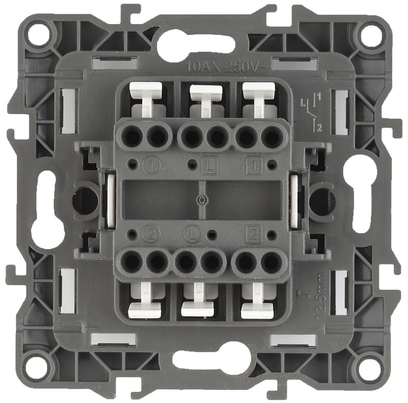 Характеристики 12-1106-03 ЭРА Переключатель двойной, 10АХ-250В, IP20, Эра12, алюминий: