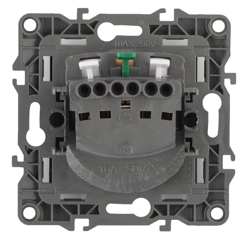 Характеристики 12-2001-05 ЭРА Розетка 2P+E Schuko, 16A-250В, IP20, без м.лапок, Эра12, антрацит: