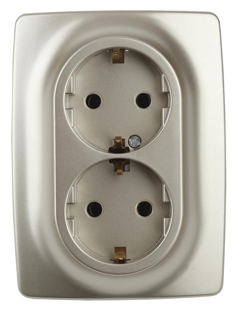 Розетка двойная с заземлением серии Эра 12 скрытой установки механизм цвет шампань 12-2106-04. Номинальные характеристики 16А 250В . Сделана из поликарбоната, оснащёна автоматическими клеммами для быстрй и надёжной фиксации жил кабеля в механиме. Парные клеммы обеспечивают соединение шлейфом. Монтаж в подрозетник производится и на лапки, и на винты. Рамки приобретаются отдельно. Рамки Эра 12: 1 пост 12-5001-хх, 2 поста 12-5002-хх, 3 поста 12-5003-хх, 4 поста 12-5004-хх, 5 постов 12-5005-хх. Рамки Эра 12 Сатин: 1 пост 12-5101-хх, 2 поста 12-5102-хх, 3 поста 12-5103-хх, 4 поста 12-5104-хх, 5 постов — 12-5105-хх (хх — код цвета: 01-белый, 02-слоновая кость, 03-алюминий, 04-шампань, 05-антрацит, 06-чёрный, 07-ольха(белёный дуб-сатин), 08-вишня, 09-дуб, 10-венге, 11-сосна, 21-жёлтый, 22-оранжевый, 23-красный, 24-охра, 25-бордо, 26-лайм, 27-зелёный, 28-голубой, 29-синий).