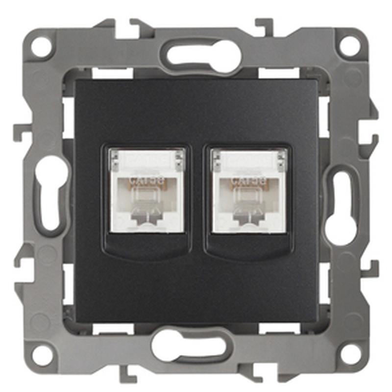 Розетка информационная двойная 2XRJ45, Эра12, антрацит