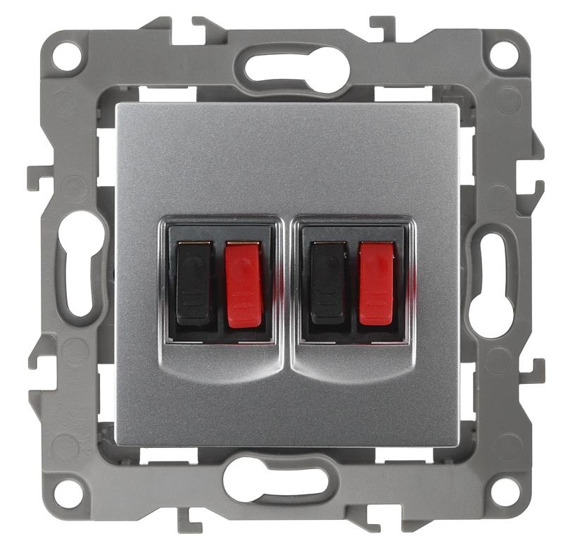 Розетка двойная аудио стерео серии Эра 12 скрытой установки механизм цвет алюминий 12-3112-03. Сделана из поликарбоната. Монтаж в подрозетник производится и на лапки, и на винты. Рамки приобретаются отдельно. Рамки Эра 12: 1 пост 12-5001-хх, 2 поста 12-5002-хх, 3 поста 12-5003-хх, 4 поста 12-5004-хх, 5 постов 12-5005-хх. Рамки Эра 12 Сатин: 1 пост 12-5101-хх, 2 поста 12-5102-хх, 3 поста 12-5103-хх, 4 поста 12-5104-хх, 5 постов — 12-5105-хх (хх — код цвета: 01-белый, 02-слоновая кость, 03-алюминий, 04-шампань, 05-антрацит, 06-чёрный, 07-ольха(белёный дуб-сатин), 08-вишня, 09-дуб, 10-венге, 11-сосна, 21-жёлтый, 22-оранжевый, 23-красный, 24-охра, 25-бордо, 26-лайм, 27-зелёный, 28-голубой, 29-синий).