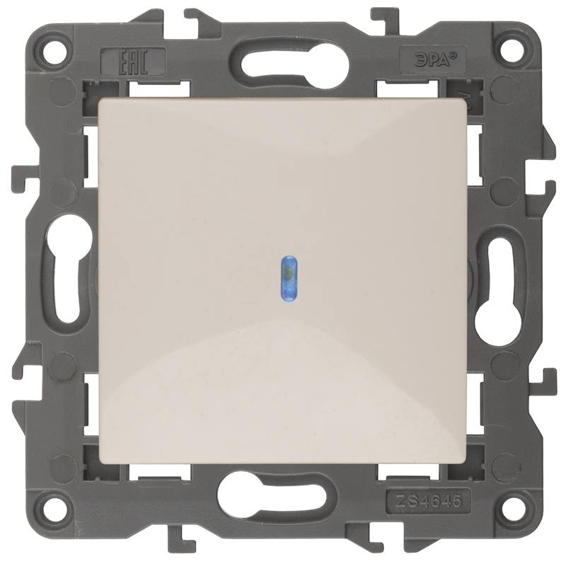 Выключатель 1-клавишный подсветка Эра Elegance слоновая кость 14-1102-02. Оснащён автоматическими клеммами для надёжной фиксации жил кабеля в механизме. Рамки приобретаются отдельно.