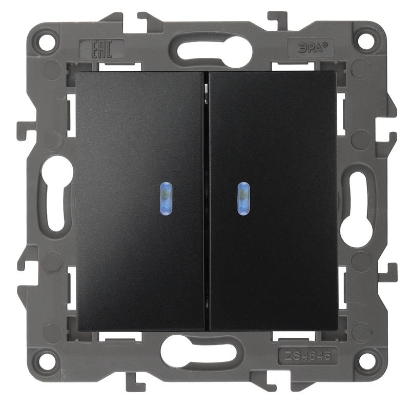 Характеристики 14-1105-05 ЭРА Выключатель двойной с подсветкой, 10АХ-250В, IP20, Эра Elegance, антрацит: