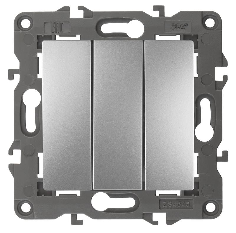 Выключатель 3-клавишный Эра Elegance алюминий 14-1107-03. Рамки приобретаются отдельно.