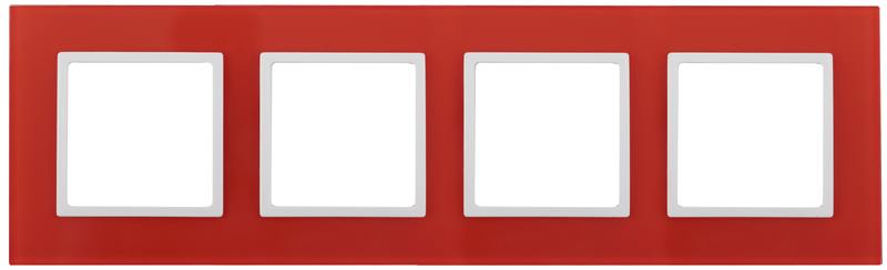 Рамка для выключателей и розеток 4-постовая серии Эра Elegance цвет красный 14-5104-23. Сделана из стекла. Используется только с механизмами серии Эра Elegance.