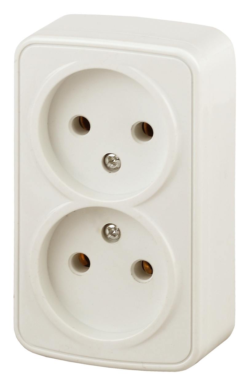 Характеристики 3-203-02 Intro Розетка 2х2P, 16А-250В, IP20, ОУ, Polo, сл.кость: