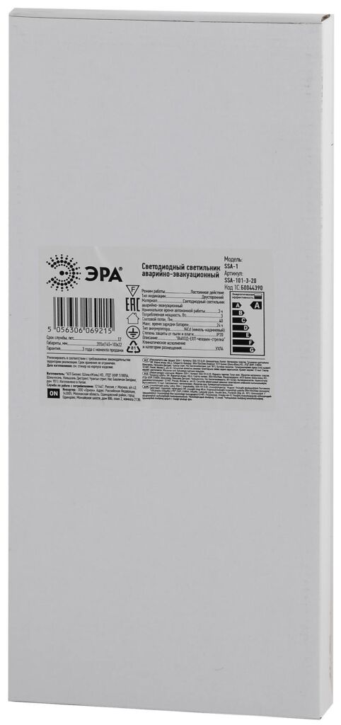 Характеристики Аварийный светильник ЭРА SSA-101-3-20 светодиодный 3ч 3Вт ВЫХОД-EXIT-ЧЕЛОВЕК-стрелка двусторонний: