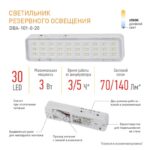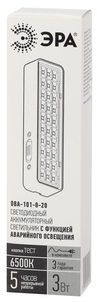 Характеристики Аварийный светильник светодиодный ЭРА DBA-101-0-20 непостоянный 30LED 5ч IP20: