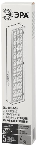 Характеристики Аварийный светильник светодиодный ЭРА DBA-103-0-20 непостоянный 60LED 5ч IP20:
