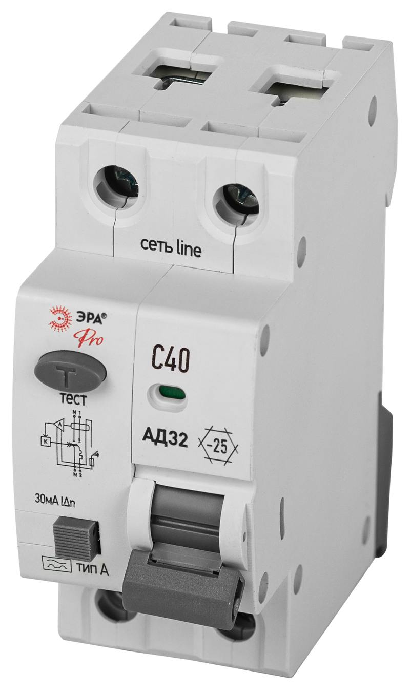Характеристики АВДТ 4,5кА ЭРА PRO D32E2C40А30 АД-32 электронное 1P+N C40 30мА тип А: