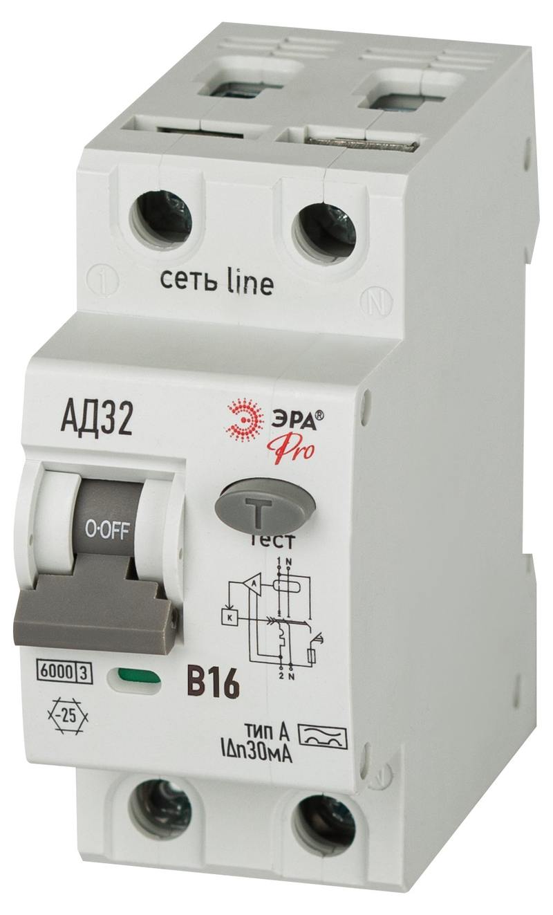 Характеристики АВДТ 6кА ЭРА PRO D326E2B16А30 АД-32 электронное 1P+N B16 30мА тип А: