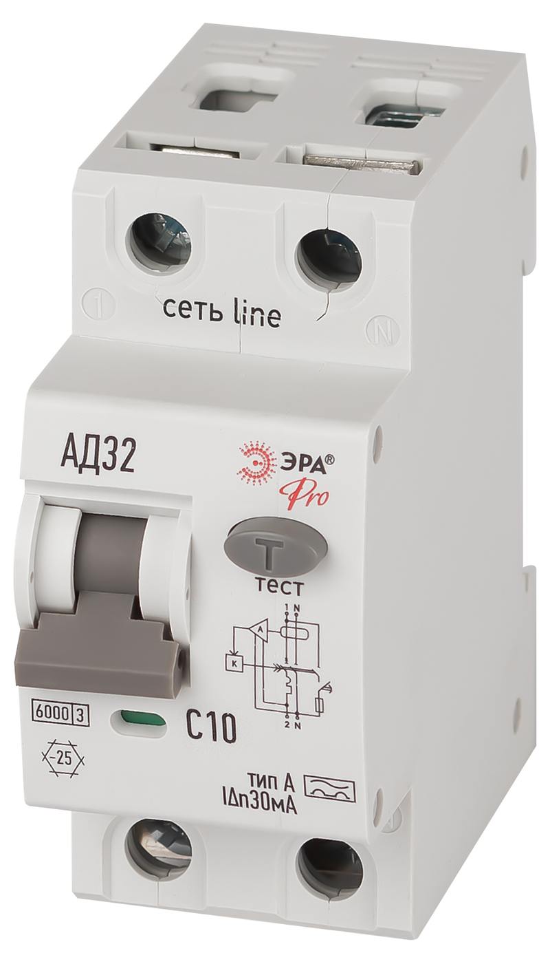 Характеристики АВДТ 6кА ЭРА PRO D326E2C10A30 АД-32 электронное 1P+N C10 30мА тип A: