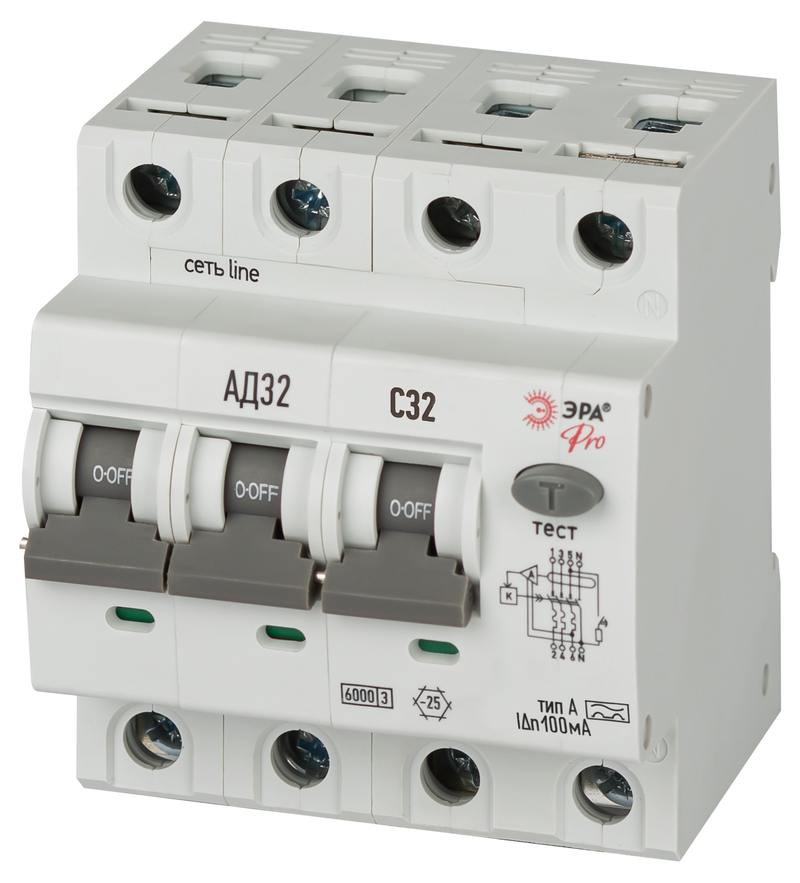 Характеристики АВДТ 6кА ЭРА PRO D326E4C32A100 АД-32 электронное 3P+N C32 100мА тип A: