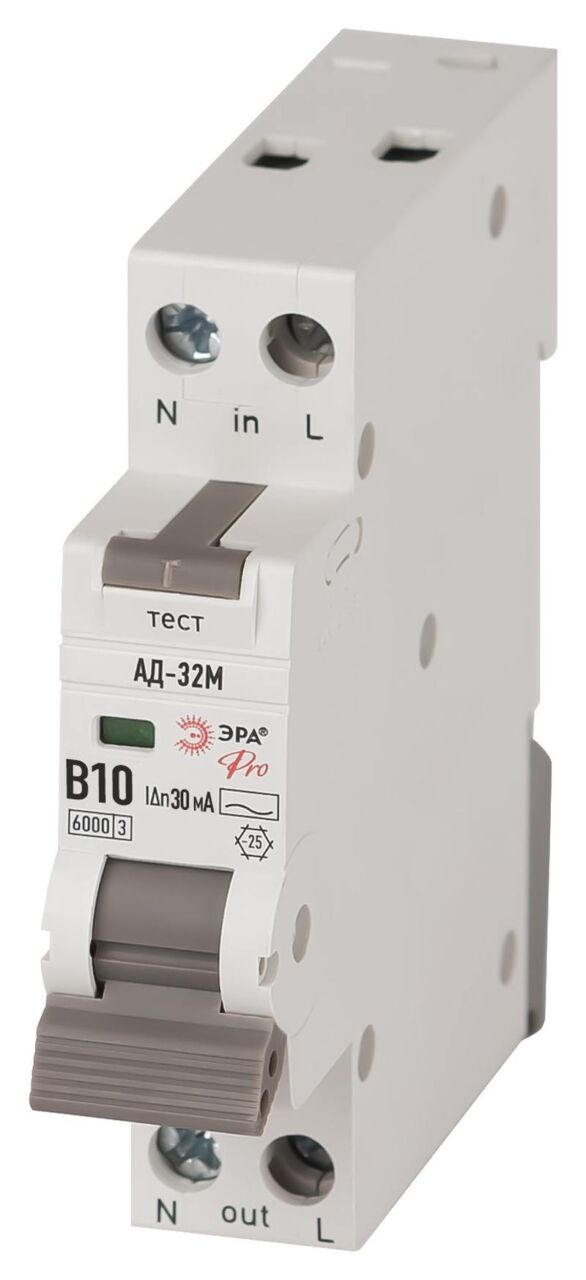Характеристики АВДТ 6кА ЭРА PRO DM32E2B10AC30 АД-32M электронное 1P+N B10 30мА тип АС: