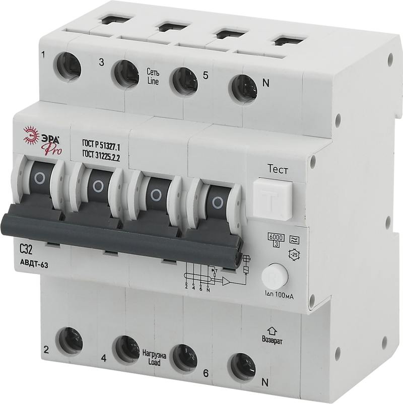 Характеристики Автоматический выключатель дифференциального тока ЭРА PRO NO-902-16 АВДТ 63 3P+N C32 100мА тип A: