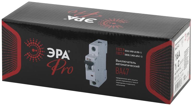 Характеристики Автоматический выключатель ЭРА PRO NO-901-44 ВА47-63 1P 16А кривая C 6кА: