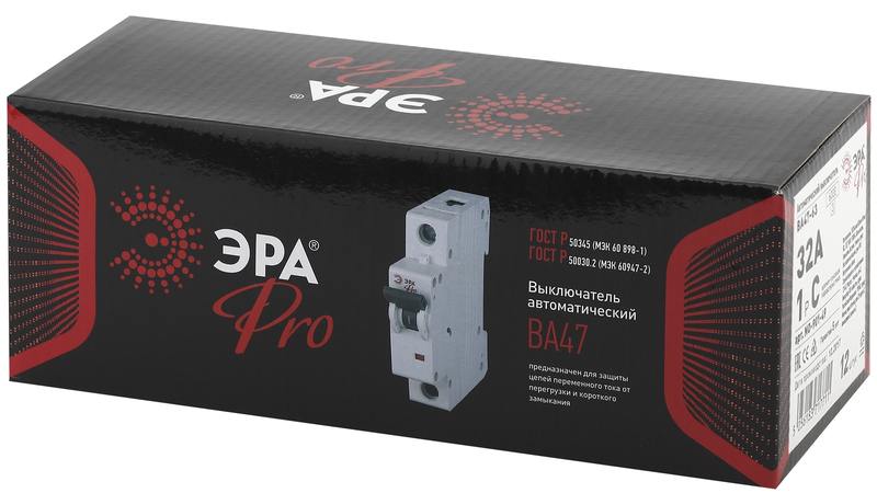 Характеристики Автоматический выключатель ЭРА PRO NO-901-49 ВА47-63 1P 32А кривая C 6кА: