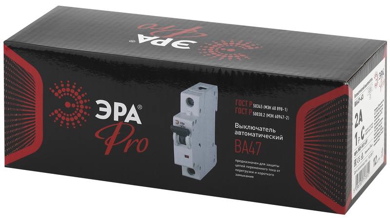 Характеристики Автоматический выключатель ЭРА PRO NO-901-59 ВА47-63 1P 2А кривая C 6кА: